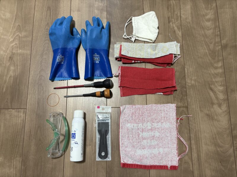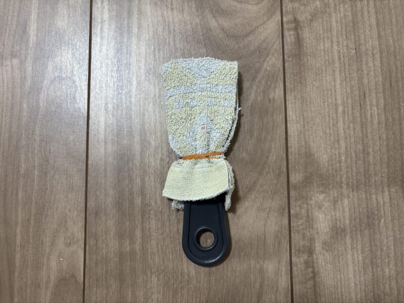 まずは送風ファン清掃用道具を自作する。この動画を参考にしたが自作した清掃道具は別物になった。リンク先の人は丁寧に道具を作っていたが面倒に感じたから僕はかなり雑に作った。それ故に清掃中巻き付けたウエスがずれやすくプチストレス。一応手でウエスを張りながら清掃はできたからよしとする。