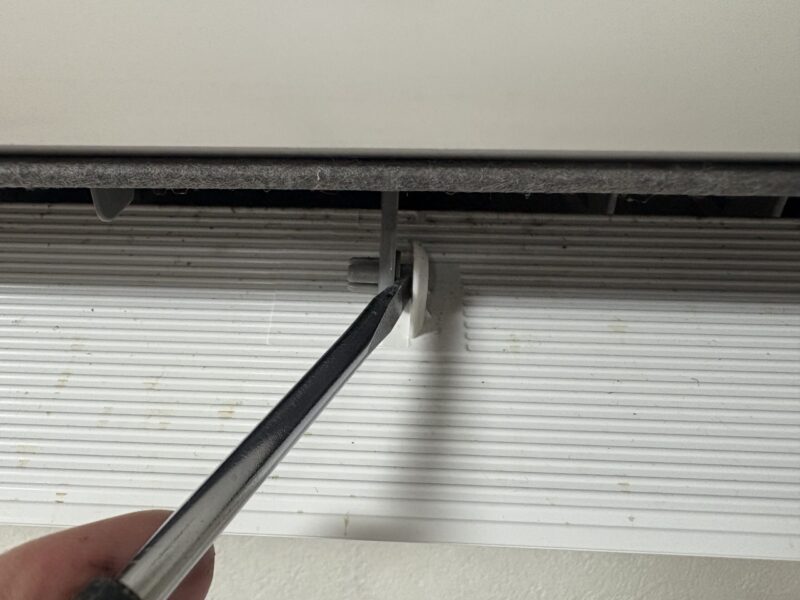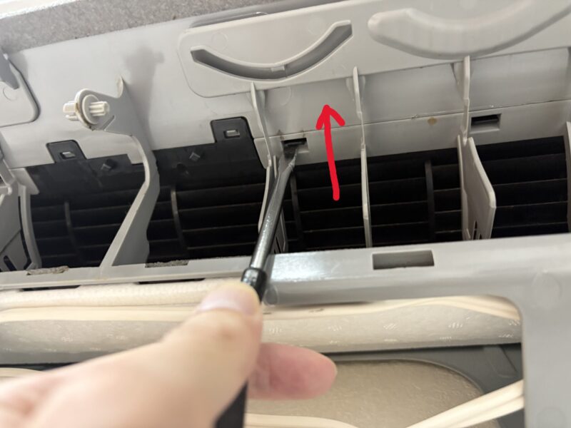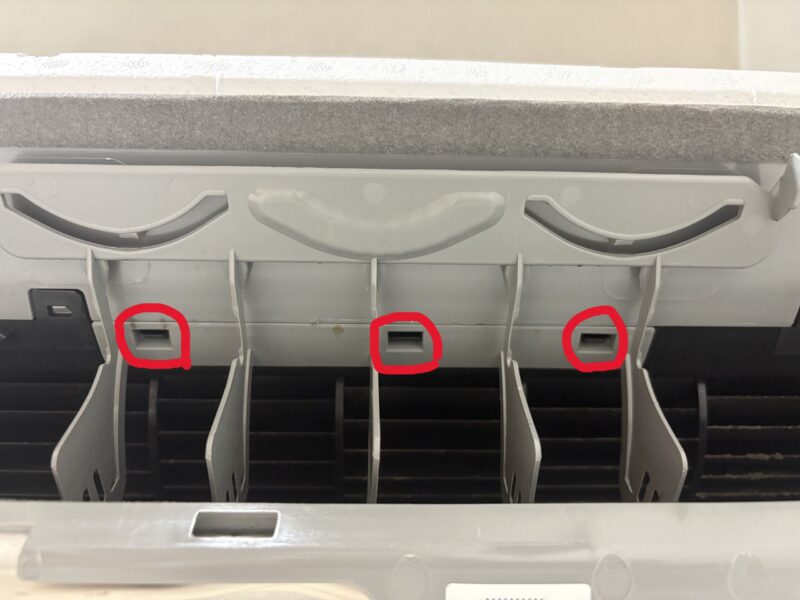 このフラップ外しは初心者には鬼門。割れそうでこわい!ってなるけど意外としなるから割れない。割れたらフラップ無しエアコンにすればいいだけ。