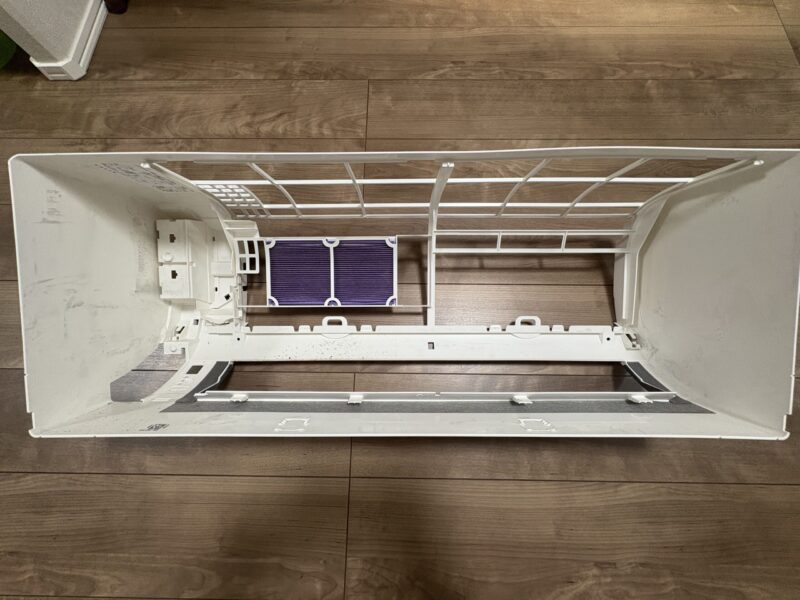 清掃を終えた状態。100点の綺麗さではないが個人的に85点くらいはとれているかな。精神衛生上いいし今後は冷房シーズン終了毎に手入れをするつもりだ。