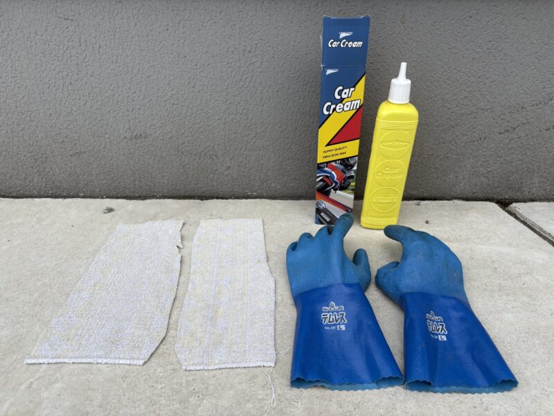 ウエスにユニコンカークリームを少量含ませて擦るだけ