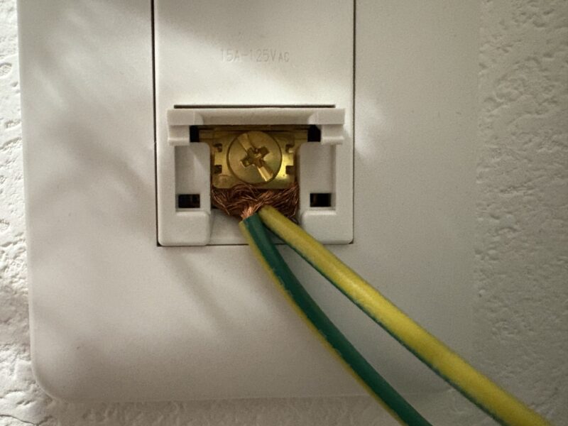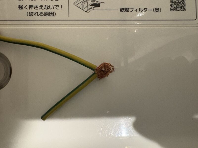 洗濯機にはアース線が接続されている。ただ、我が家の場合は末端が雑すぎて視界に入る度にモヤモヤしていた。